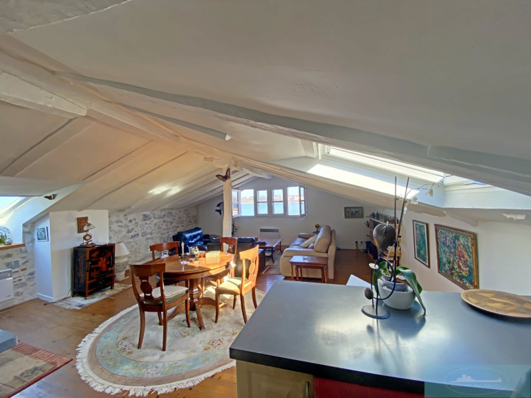 Dans le centre historique de Ciboure, coup de coeur assuré pour cet appartement de 82 m² utile au dernier étage d'une petite copropriété. Beaucoup de charme, une très très belle vue sur la baie de Saint jean de luz, plages et commerces à pied !