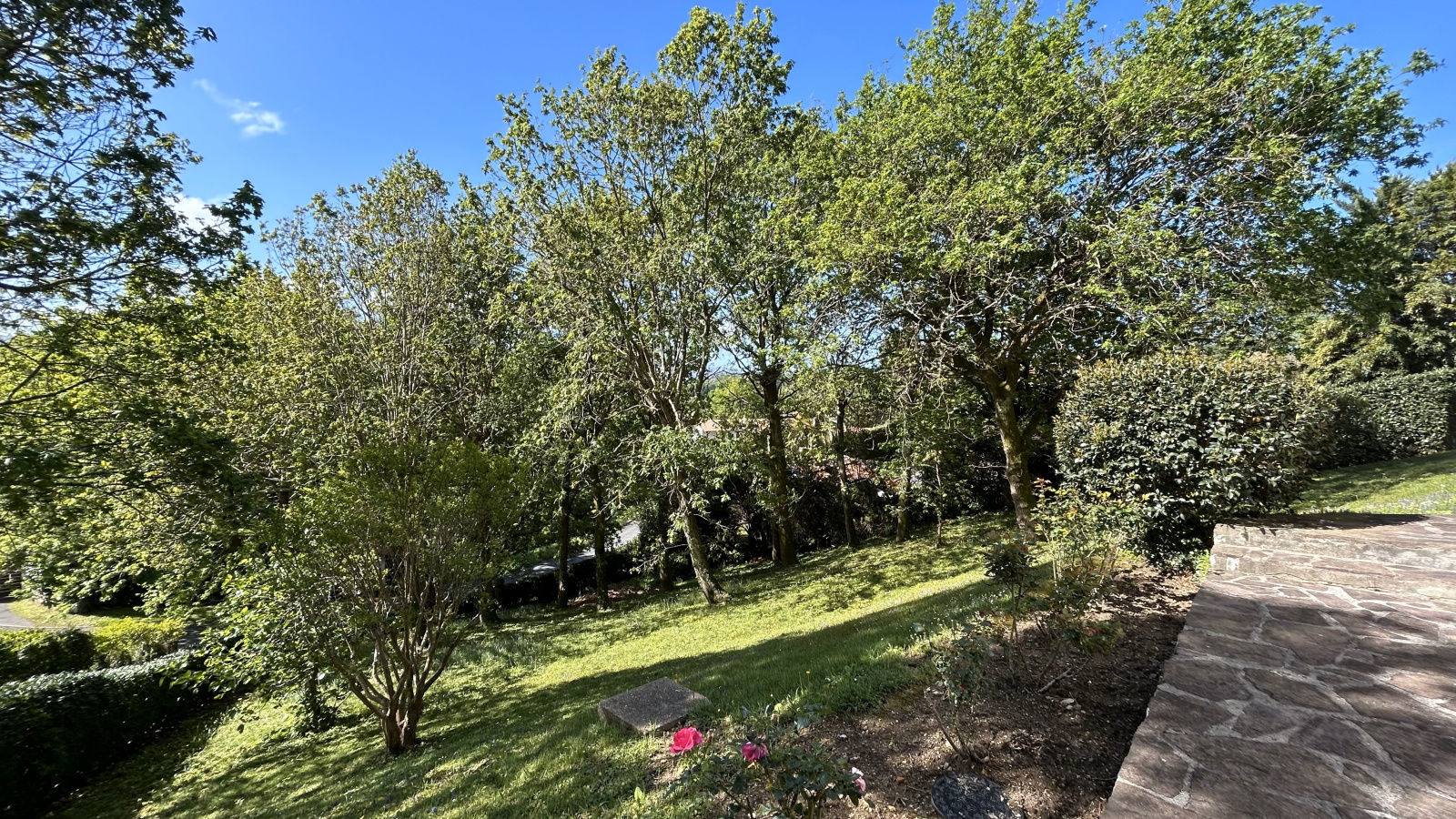 Plusieurs pièces de plain-pied s’ouvrent sur une terrasse et un jardin exposés plein sud, avec une vue dégagée sur la Rhune.